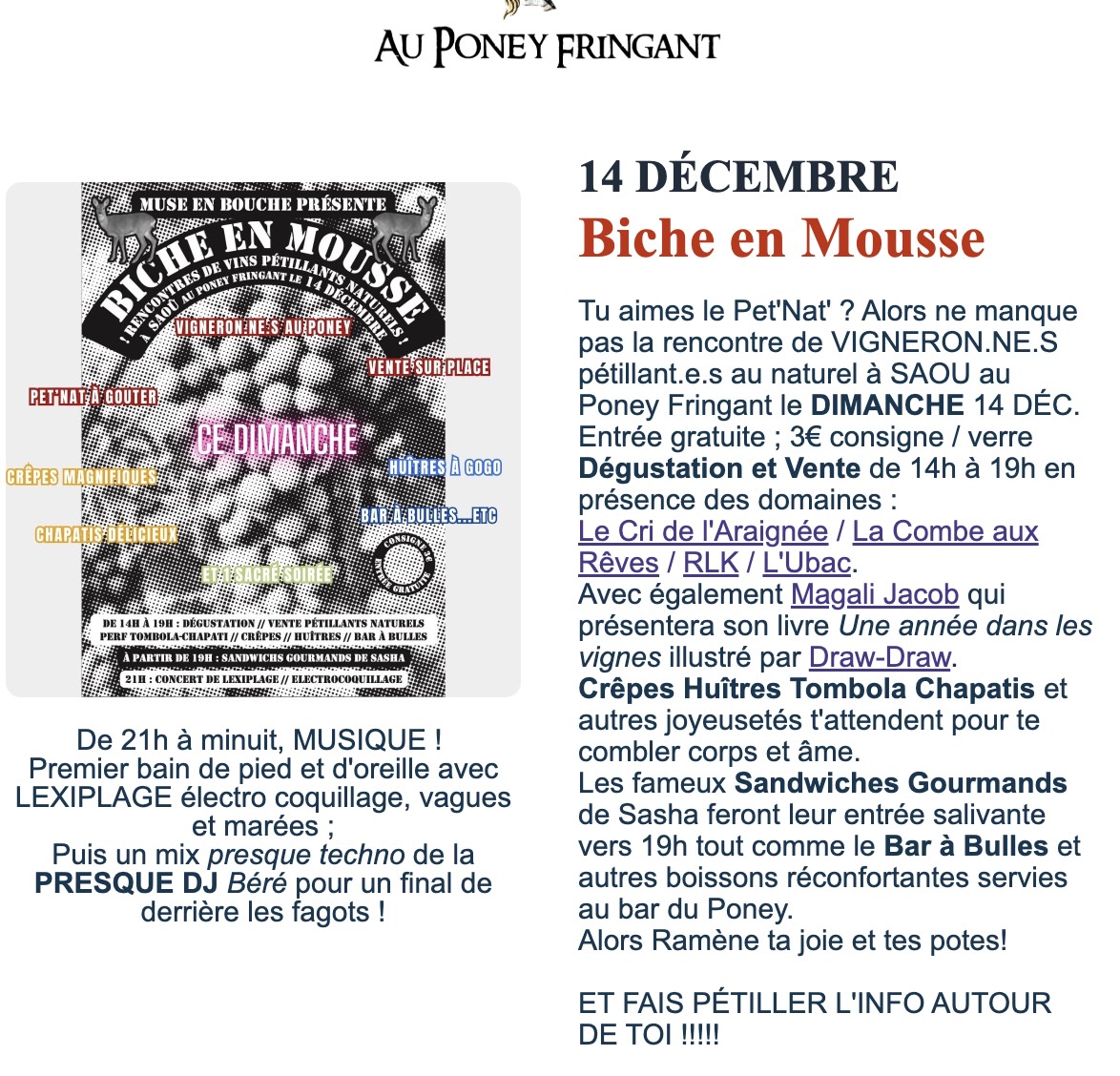 Et on ne résiste pas à l’envie de t’en dire un peu plus sur la réouverture officielle du Poney fringant !