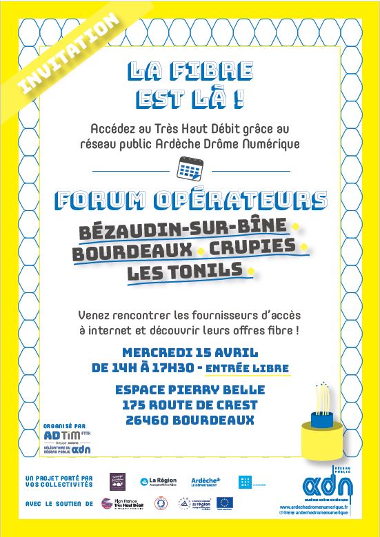 15/04 – Forum opérateurs Fibre – Bourdeaux Par Sylvie|2026-04-03T22:01:34+02:003 avril 2026|ACTUALITES, Bézaudun sur Bîne, Bourdeaux|Commentaires fermés sur 15/04 – Forum opérateurs Fibre – Bourdeaux Partager cette page FacebookXRedditLinkedInTumblrPinterestVkEmail