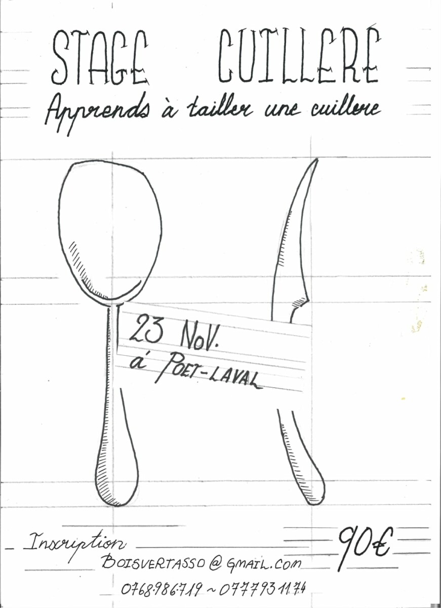 L’association Bois Vert propose une formation de taille de cuillère à partir d’un morceau de bois brut “blank” jusqu’à l’objet final. Tous les aspects théoriques et pratiques seront abordés pour que vous puissiez par la suite approfondir vos connaissances en toute autonomie.