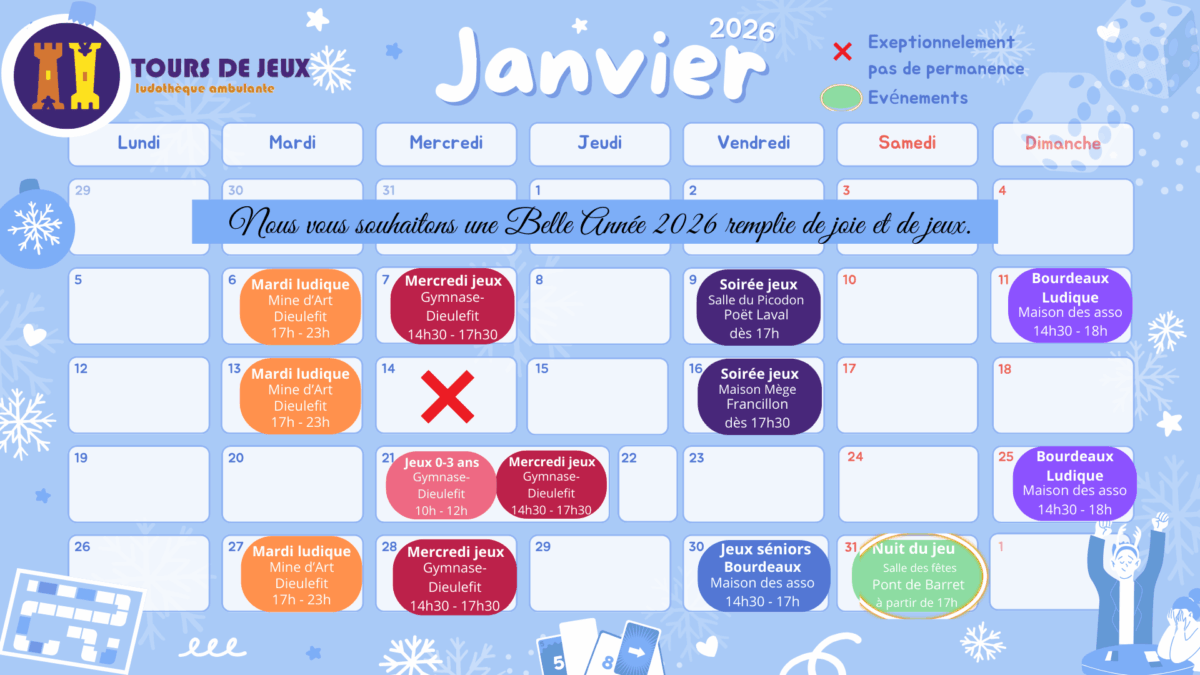 Vous pourrez retrouver tout ça sur nos permanences et notre  calendrier d’événements dont voici le planning de janvier: