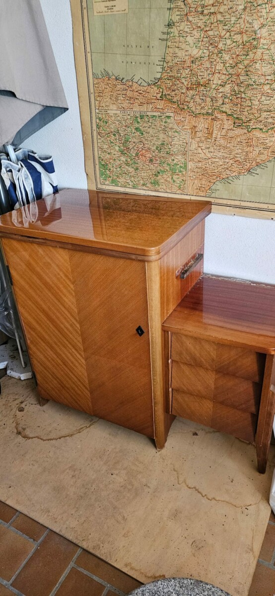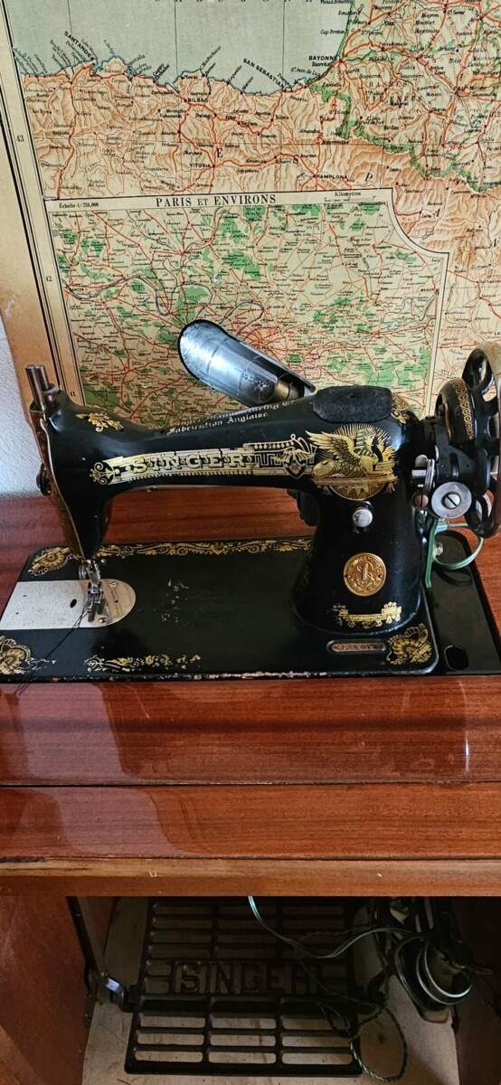 Rangée dans un joli meuble en bon état, cette machine à coudre Singer ravira les amateurs d’objets anciens .