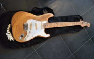 A vendre guitare électrique avec ampli branchement électrique et aussi à piles, micro shure pg 48, housse de guitare, câbles et deux capodastres. Prix : 250 euros. Contact 06 49 57 71 80