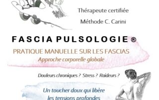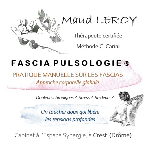 FASCIAPULSOLOGIE® Maud LEROY Pratique manuelle globale sur les Fascias présents dans l'ensemble du corps. Toucher doux et profond accompagnant la vitalité tissulaire et circulatoire. Faciliter la mobilité corporelle, la détente du système nerveux, la circulation sanguine et lymphatique, les fonctions corporelles et digestives. Séances pouvant s'intégrer en complément d'un suivi médical et d'un parcours de soins [...]