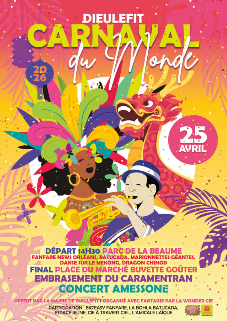 La mairie de Dieulefit et la Wonder Compagnie vous invitent à célébrer le carnaval dans une ambiance festive, colorée et conviviale !