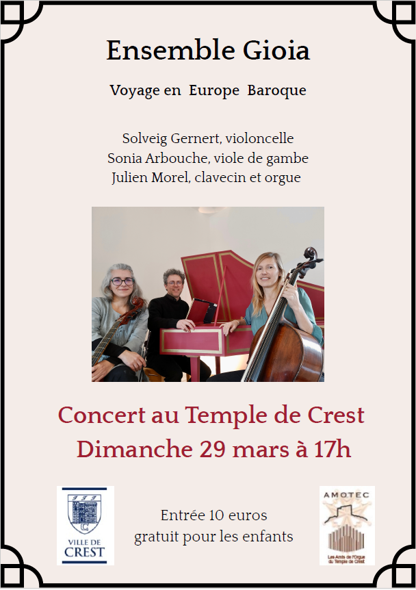 – “Voyage en Europe baroque”– Dimanche 29 mars 2026 à 17h – Temple de Crest