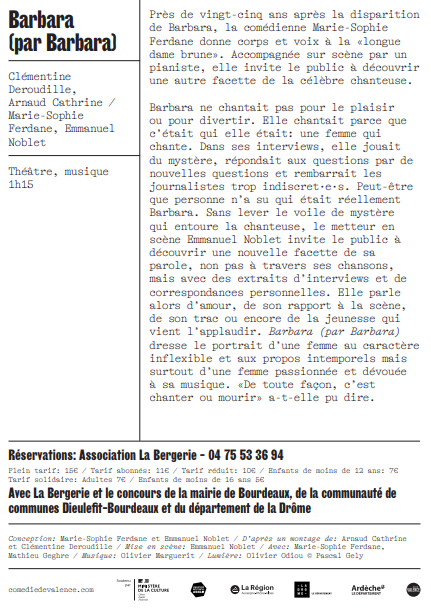 30/04 – Comédie itinérante – Barbara (par Barbara) – Bourdeaux
