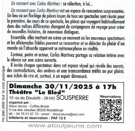 30/11 – Spectacle : Un moment avec Carlos Martinez – Mime – Le Bled – Souspierre