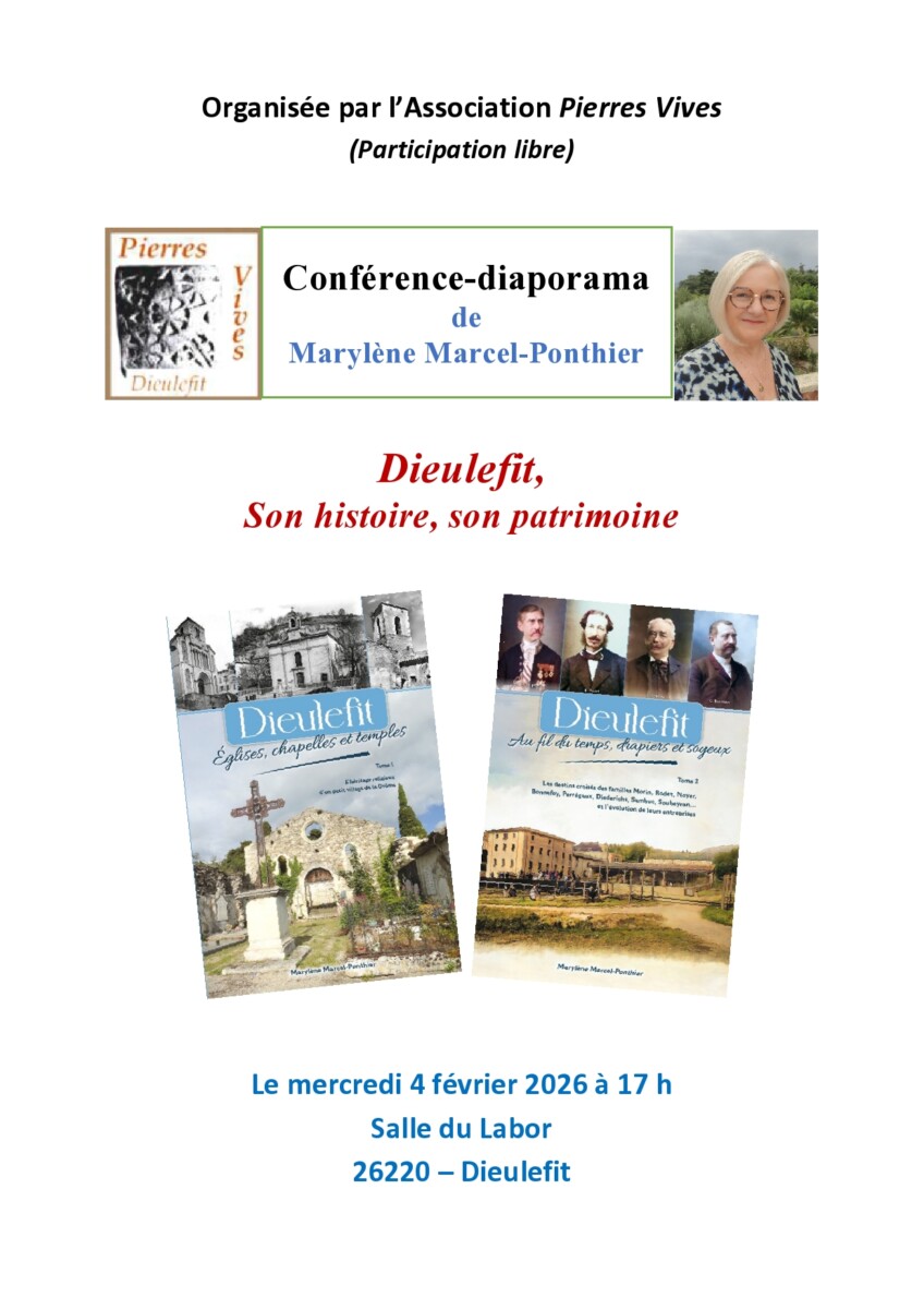 Mercredi 4 février 2025 à 17 h Salle du Labor (1er étage) . Dieulefit