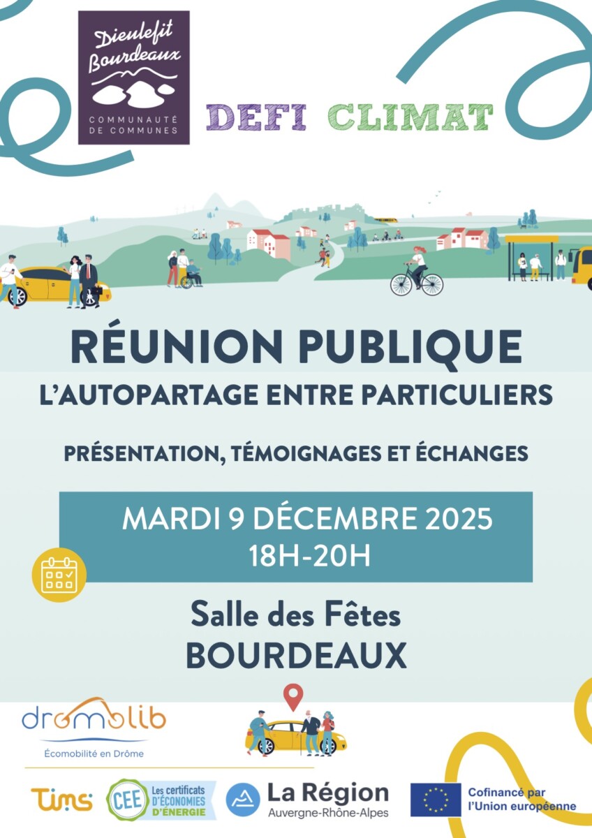 Cette réunion aura lieu le 09 décembre de 18h à 20h dans la salle des fêtes de Bourdeaux.