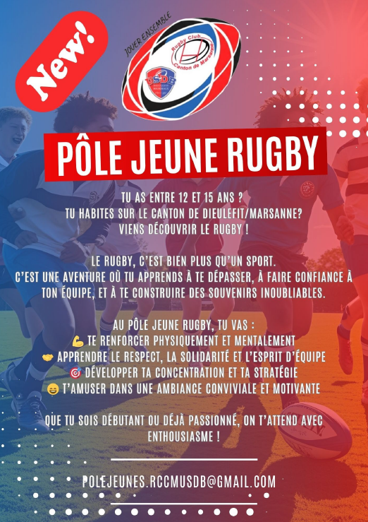 Saison 2025/26 – Le Pôle Jeune Rugby recrute – Dieulefit/Bourdeaux Par Gwendoline|2025-09-24T15:57:22+02:0024 septembre 2025|Activités sportives - Actualités, Activités sportives - Liste, Autour des associations et clubs, Enfance - Jeunesse, ETRE EN FORME, LA PERSONNE, LES ASSOCIATIONS ET CLUBS, Liste des associations et clubs, PROGRAMMES DE LA SAISON|Commentaires fermés sur Saison 2025/26 – Le Pôle Jeune Rugby recrute – Dieulefit/Bourdeaux Pour en savoir plus : Rugby – presentation pôle jeune Partager cette page FacebookXRedditLinkedInTumblrPinterestVkEmail