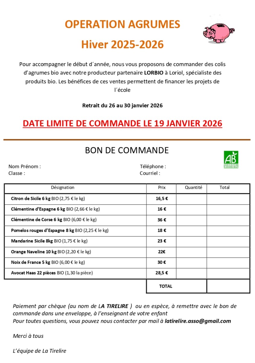 Vente d’agrumes par la tirelire . commande avant le 19/O1. Bourdeaux Par JAC|2026-01-12T13:23:26+01:0012 janvier 2026|Autour des associations et clubs, LES ASSOCIATIONS ET CLUBS, SE NOURRIR|Commentaires fermés sur Vente d’agrumes par la tirelire . commande avant le 19/O1. Bourdeaux Partager cette page FacebookXRedditLinkedInTumblrPinterestVkEmail